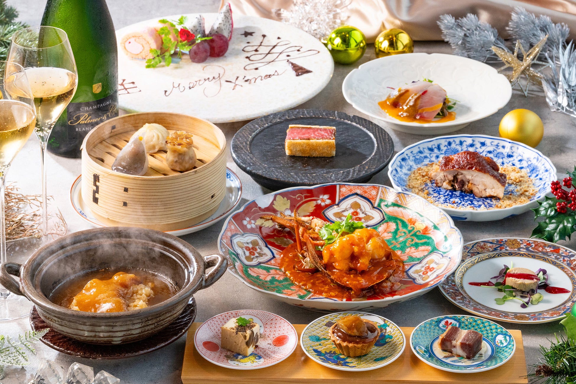 福メニューにあたるディナープレミアムコースは、火入れにこだわり柔らかく仕上げた「A5和牛ヒレ肉 カツサンド~海鮮醤風味~」や、濃厚な"金湯(ガムトン)"スープで煮込んだ「気仙沼産 吉切鮫 フカヒレ土鍋ご飯」など、最上級の食材をふんだんに使用した、当店を代表するメニューの数々をお楽しみいただけます。お正月だけの特別企画とともに、贅沢なひとときをぜひご堪能ください。