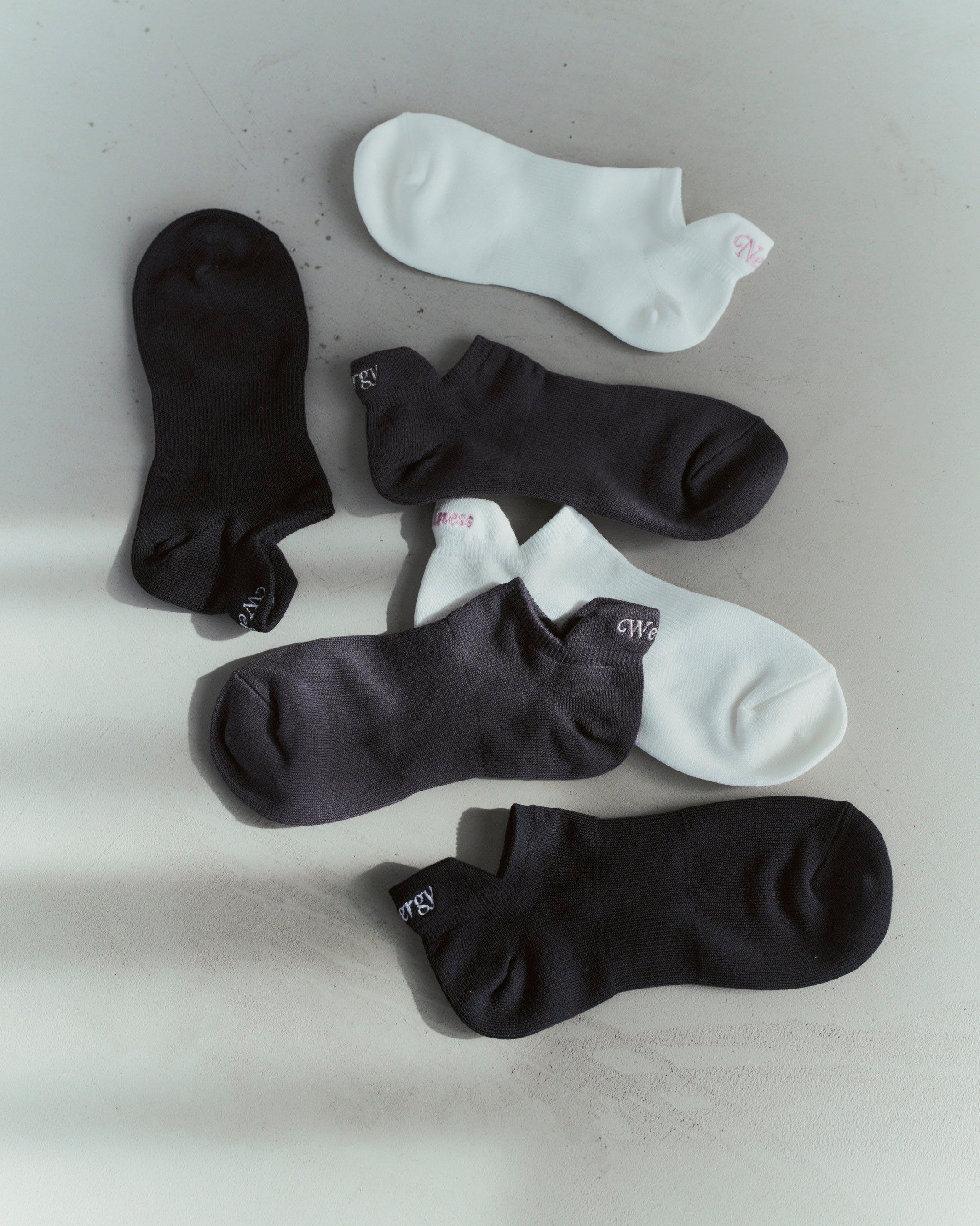 スニーカーやサンダルと合わせたCITYシーンにはもちろん、ヨガ、ピラティスなどWORK OUTシーンにも活躍する機能性を兼ね備えた、NERGYならではのコラボレーションソックスが実現しました。