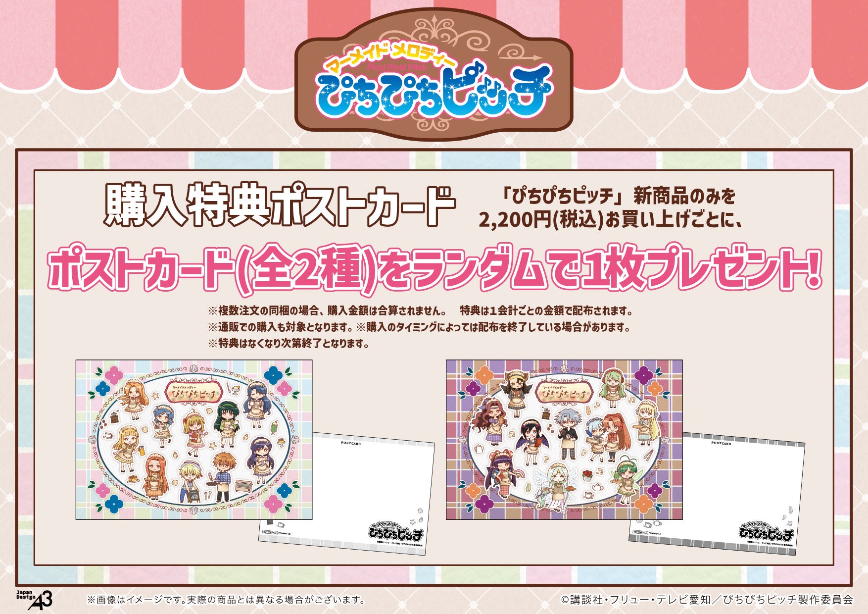 TVアニメ『マーメイドメロディー ぴちぴちピッチ』新商品のみを2,200円(税込)お買い上げごとに、ポストカード(全2種)をランダムで1枚プレゼントします。