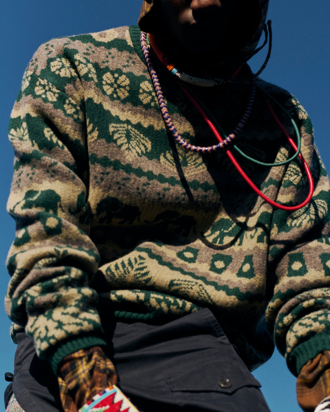 クルーネックニット(¥35,200)、フリースジップブルゾン(¥30,800)、バラクラバ(¥12,100)、フリースマフラー(¥13,200)のほか、動物モチーフのプリントTシャツ(¥9,900)、ケニアを象徴する民族から着想したフーデッドネルブルゾン(¥28,600)など、多彩な“KENYA”の魅力を感じるアイテムが揃います。さらに「ビームス ライフ 横浜」では、コレクションのオリジナルパターンを採用したクッションも展開。インテリアにも“KENYA”の空気感を取り入れられる特別アイテムとしてお楽しみいただけます。