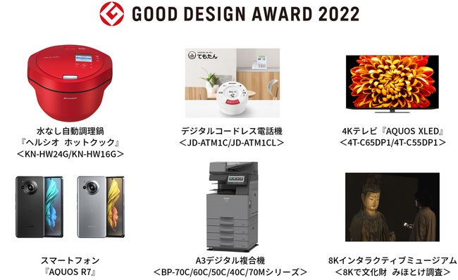 シャープは、以下の6製品において、『2022年度 グッドデザイン賞』(主催:公益財団法人 日本デザイン振興会)を受賞しました。