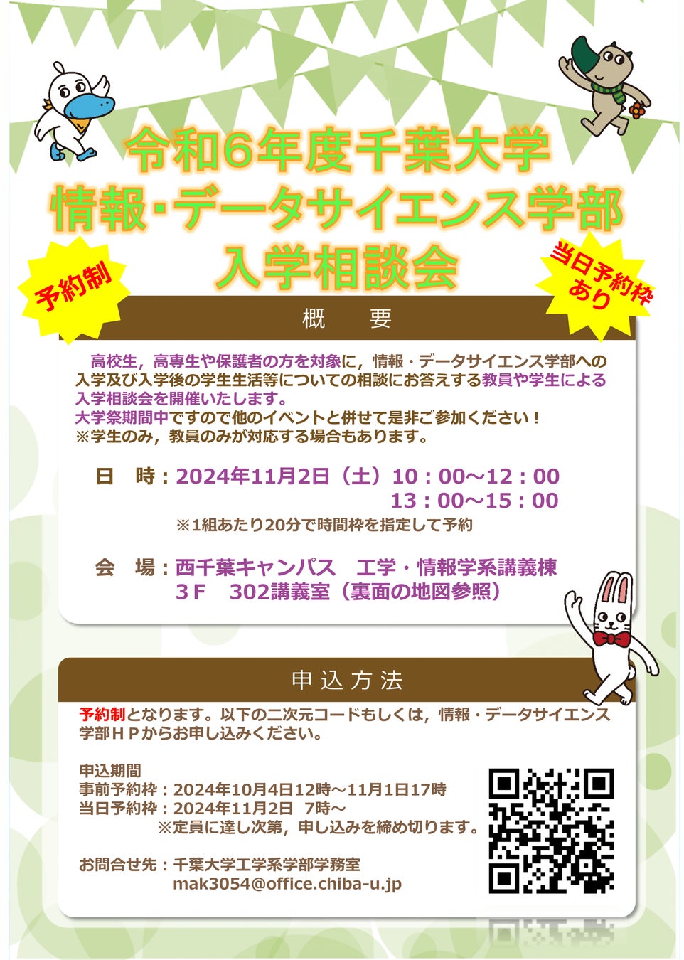千葉大学工学部/情報・データサイエンス学部入学相談会2024を開催します