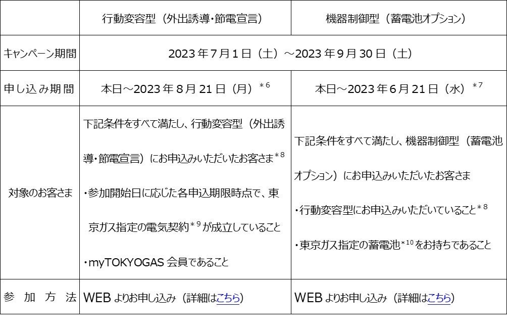 *4:昨年度までの東京ガスの節電キャンペーンにご参加いただいたお客さまは、行動変容型へのお申込みは不要です。蓄電池オプションに参加される場合のみお申込みが必要です。