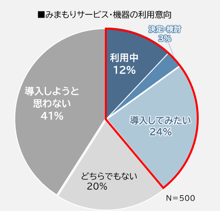 総務省のデータ(※3)によると、2040年には65歳以上の単独世帯の割合は約40%に達すると予測されています。また、パナソニックが実施した調査(※4)では一人暮らしの親を持つ子の約4割(39%)が親を見守りできるサービスや機器を利用中、又は導入したいと回答しています。