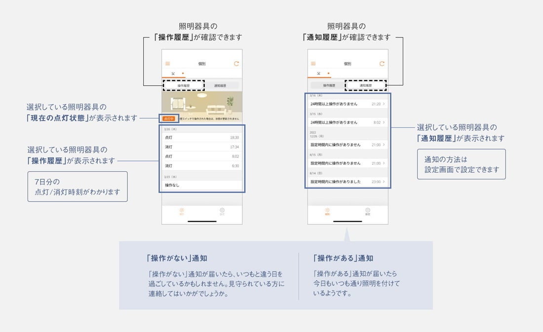※2:「あかりdeみまもりサービス」は緊急事態を通知するものではありません。また、見守られる方の身体・生命の安全を保証するものでもありません。見守られる方の同意を取得してからご利用ください。