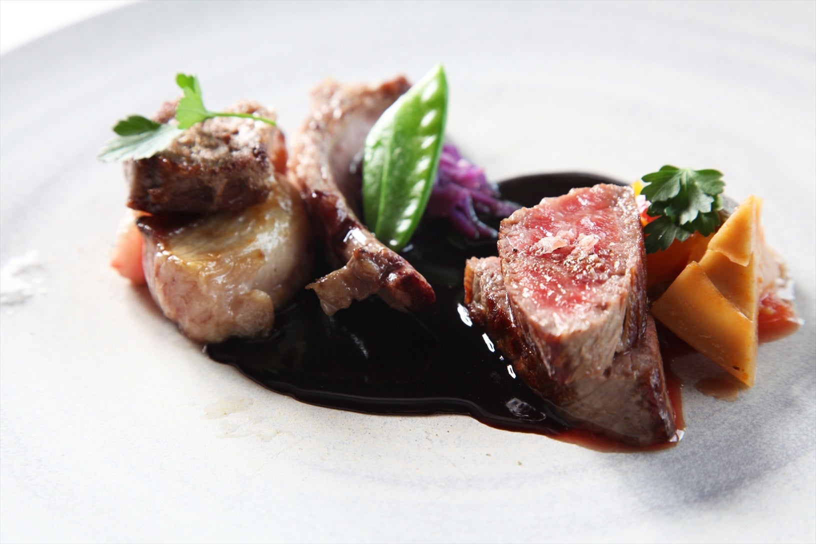 仔羊背肉のローストと阿波牛ランプ肉のグリル