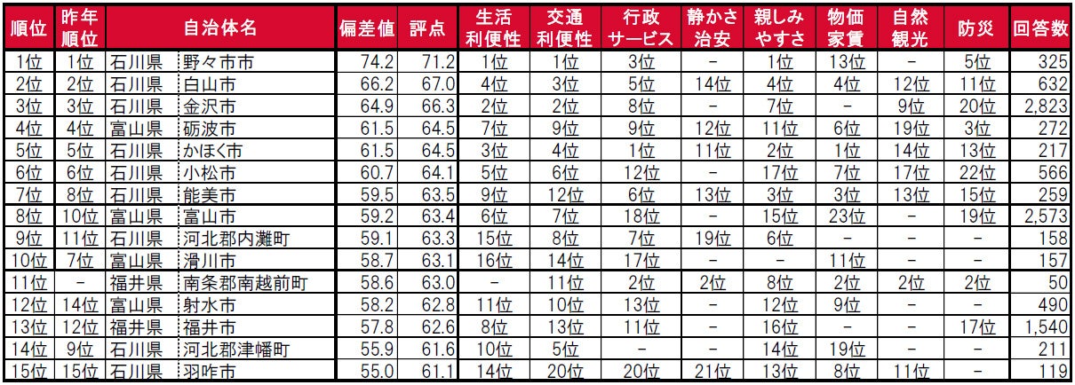 「いい部屋ネット 街の住みここちランキング2023<北陸版>」 主なポイント