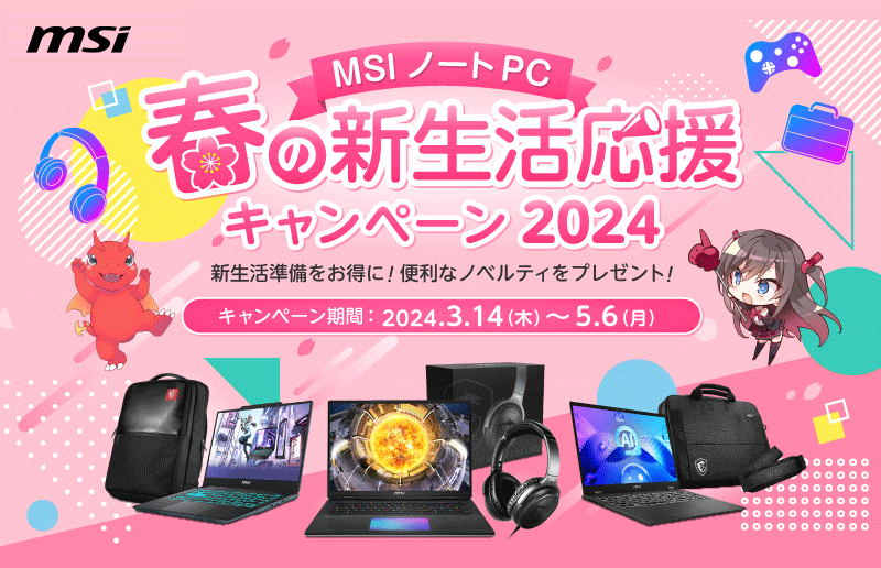 対象のMSIノートPC製品の購入で豪華特典がもらえる、キャンペーンを開催 『MSI ノートPC 春の新生活応援キャンペーン2024』