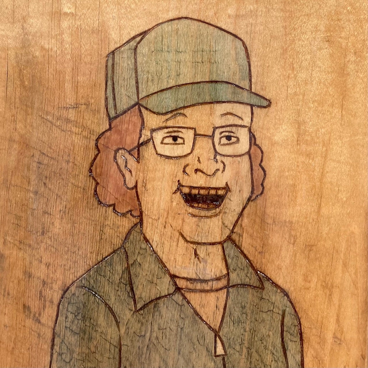 木材に彫刻刀でグラフィックを手彫りしニスの色味を主に着色した作品を制作するアーティスト。サーフ、スケートカルチャーからの影響を強く受け、どこか抜けたタッチで彫られた人物やキャラクターを描く。また徐々に色味が濃くなり経年変化する作品が特徴。