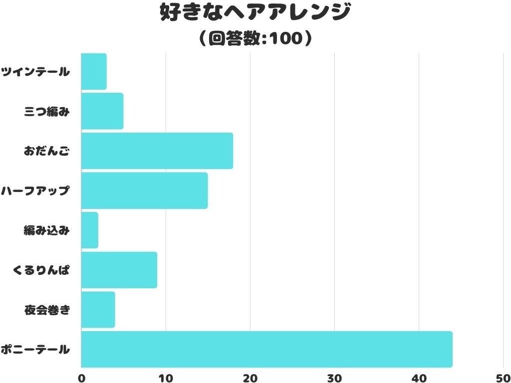 好きなヘアアレンジをアンケートにて調査したところ、1位は「ポニーテール」でした。