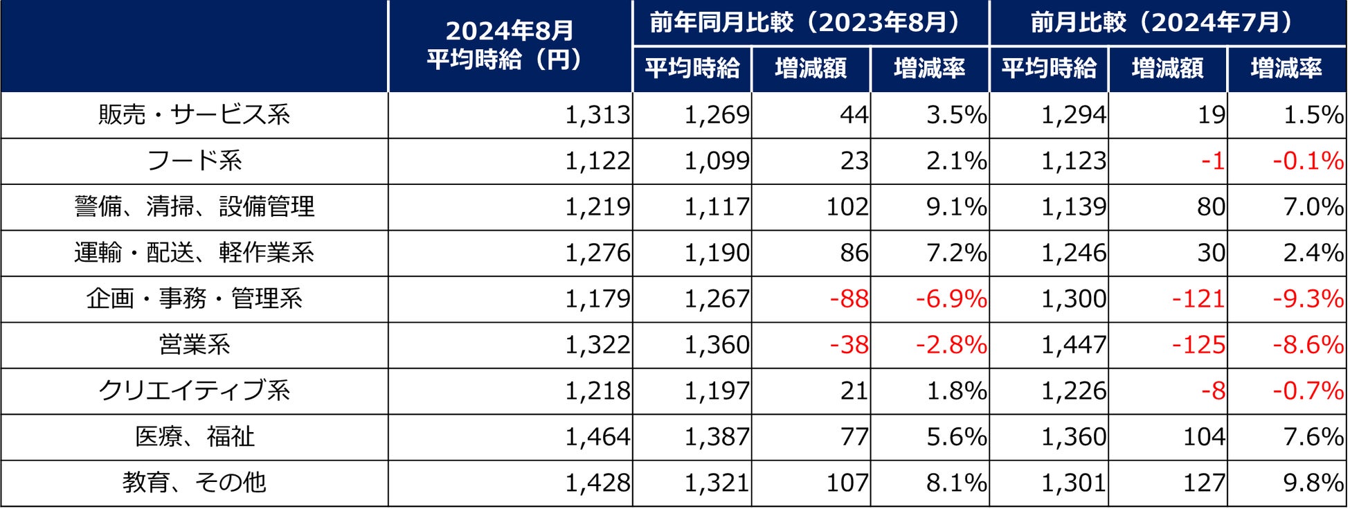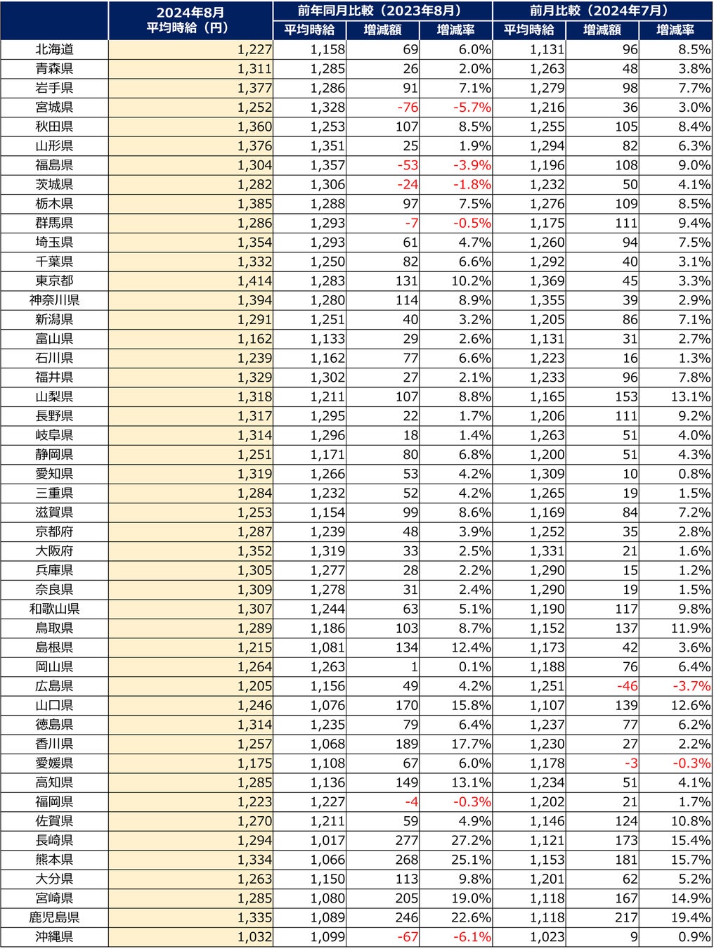 国内最大級の総合求人サイト『エンゲージ』アルバイト・パート募集時平均時給調査(2024年8月度)