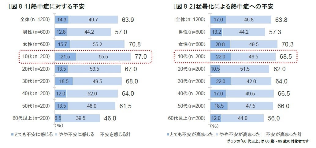 6割以上が熱中症に「不安」を感じ、猛暑化で「さらに不安が高まる」 どちらも10代の不安が最多