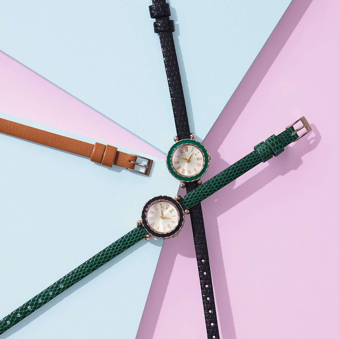 レトロなムードたっぷりに表現したカラーウォッチ。 手書きの柔らかなニュアンスをそのまま表現した縄目模様のベゼルは、 グリーン、 ブラックの2色展開。