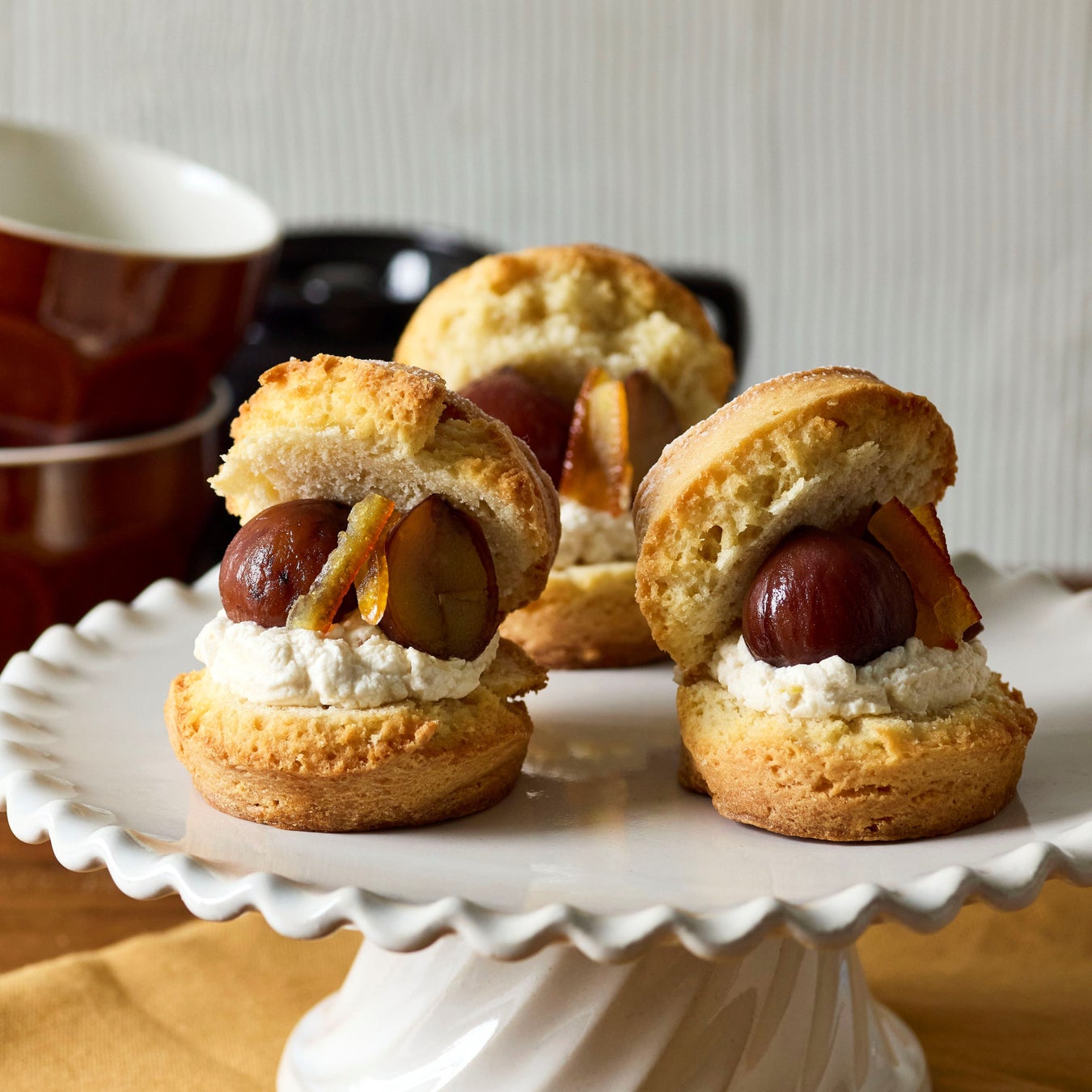 バターミルクスコーンに渋皮栗と自家製メープルホイップクリームをサンドしました。