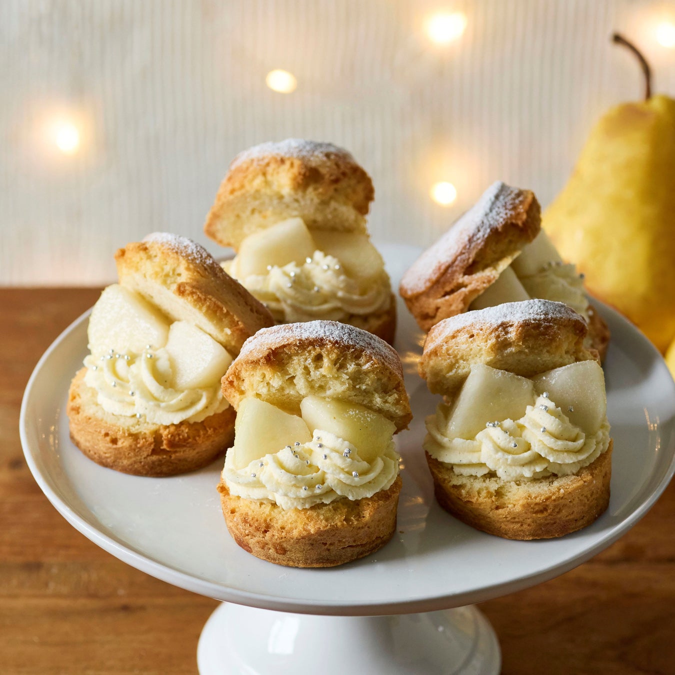 バターミルクスコーンに芳醇な香りと濃厚な甘みの「幻の洋梨」と呼ばれるル レクチエと自家製バニラカスタードクリームをサンドしました。