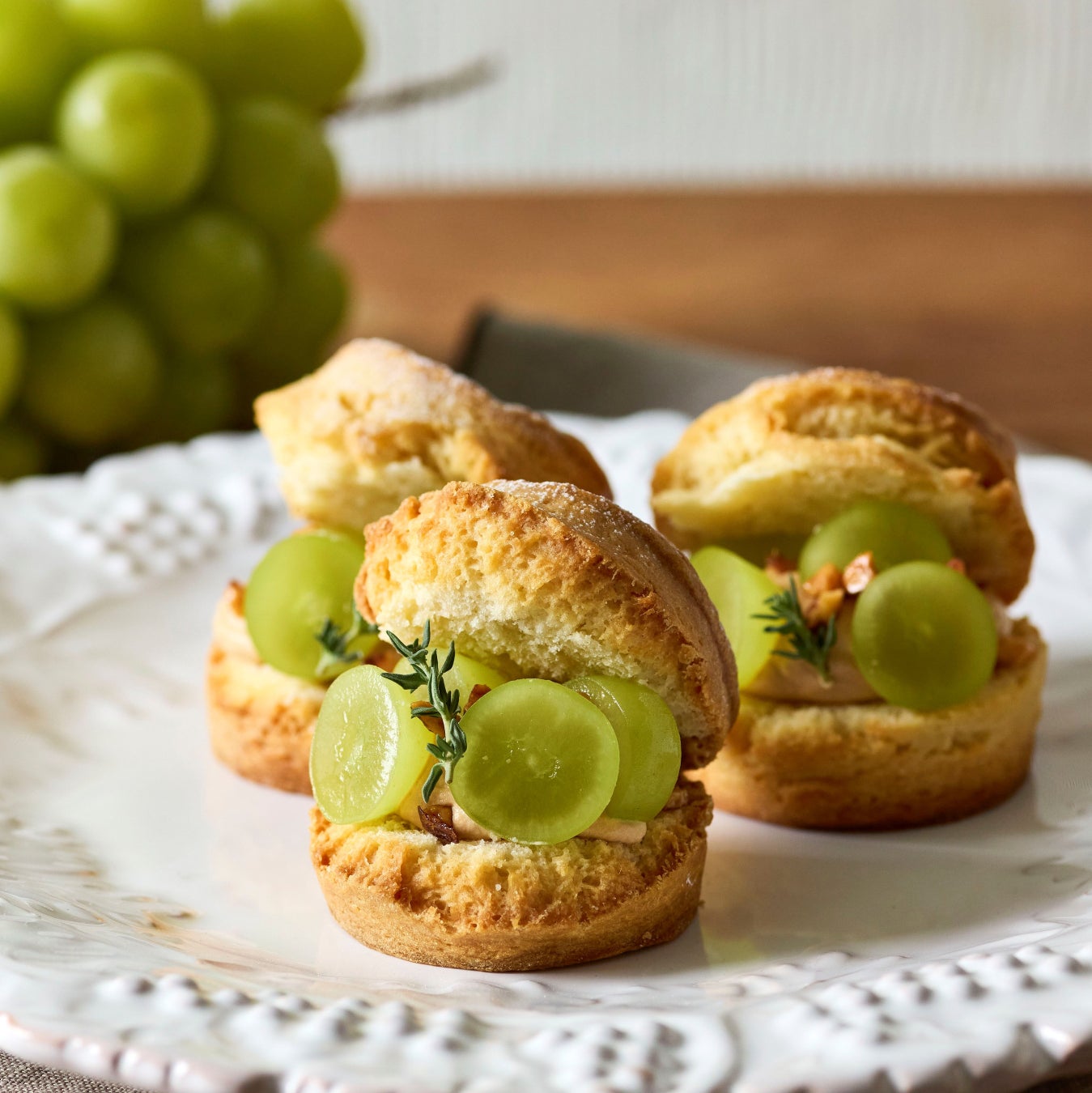 バターミルクスコーンにみずみずしいシャインマスカットと自家製ミルクティークリームをサンドしました。