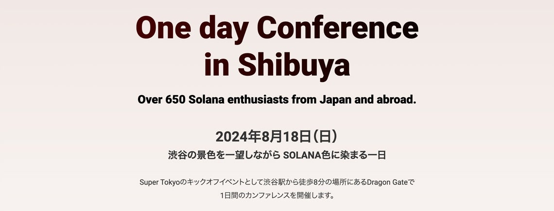Web3初心者でも学べる、出会える、挑戦できる。Solana「Super Tokyo」開催、8/18のソラナ有名プロジェクト多数参加のカンファレンスと8/19からの起業家育成プログラム