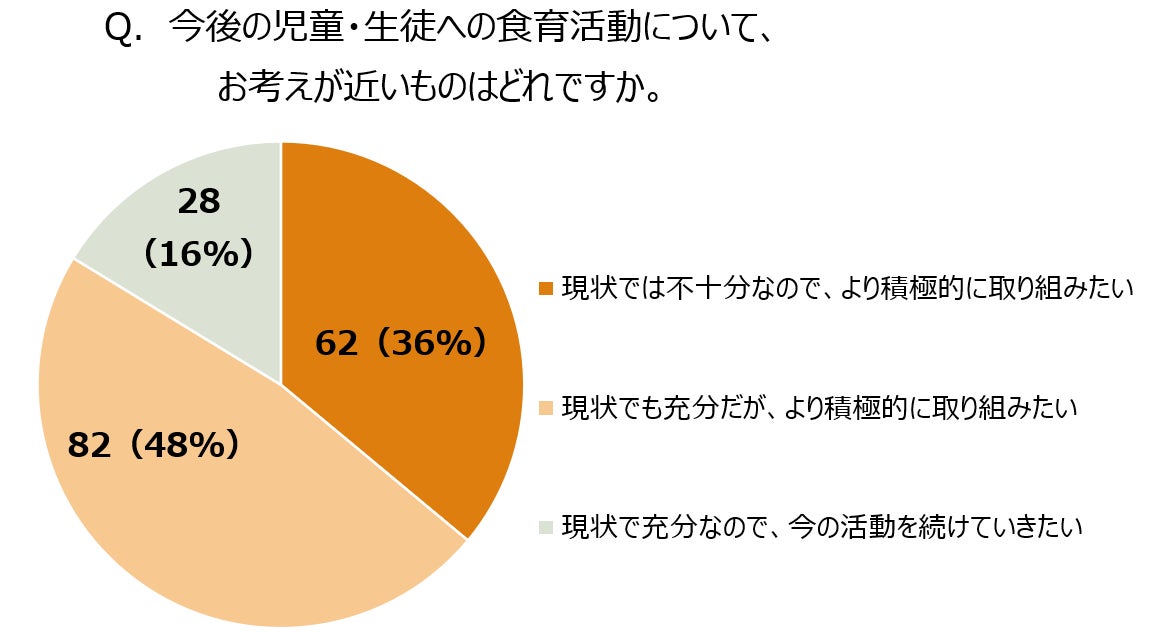 ・食育活動について積極的に取り組みたいという回答は全体の84%でした