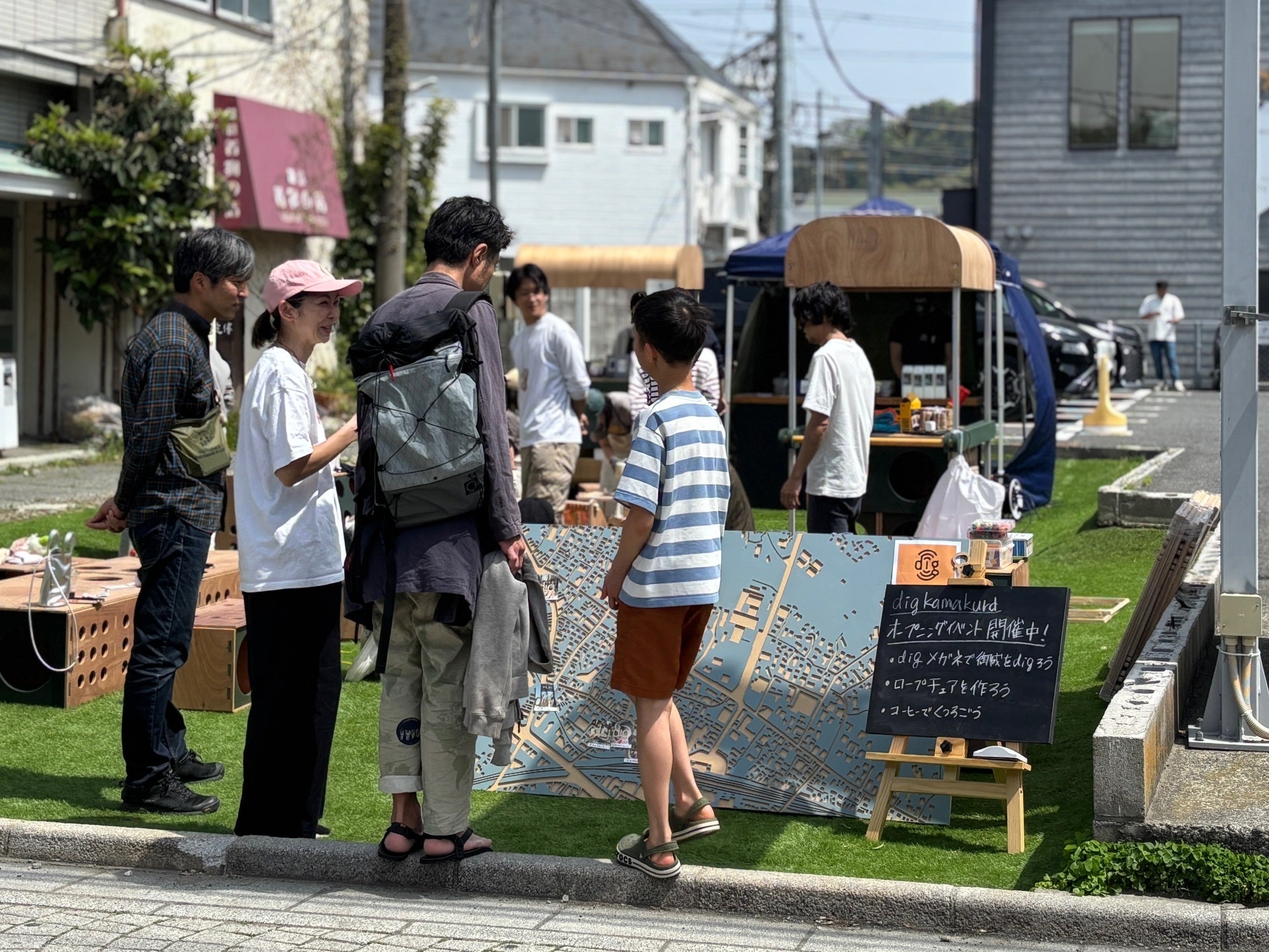 本プロジェクトは、建築予定地を着工までの2025年4月より10ヶ月間、特別な利用ルールを設けずに一般開放した空き地「dig kamakura(ディグ かまくら)」を起点としています。ワークショップやイベントなど、多様な使われ方が自然発生的に広がり、延べ4,000人以上が利用。地域の商店街関係者や観光客、地元小学校の親子が集うなど、単なる建築予定地を超えた“公共性を帯びた空間”へと育っていきました。