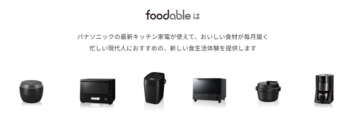 foodableは、新品のキッチン家電レンタルとこだわりの食材が届く月額サービスです。