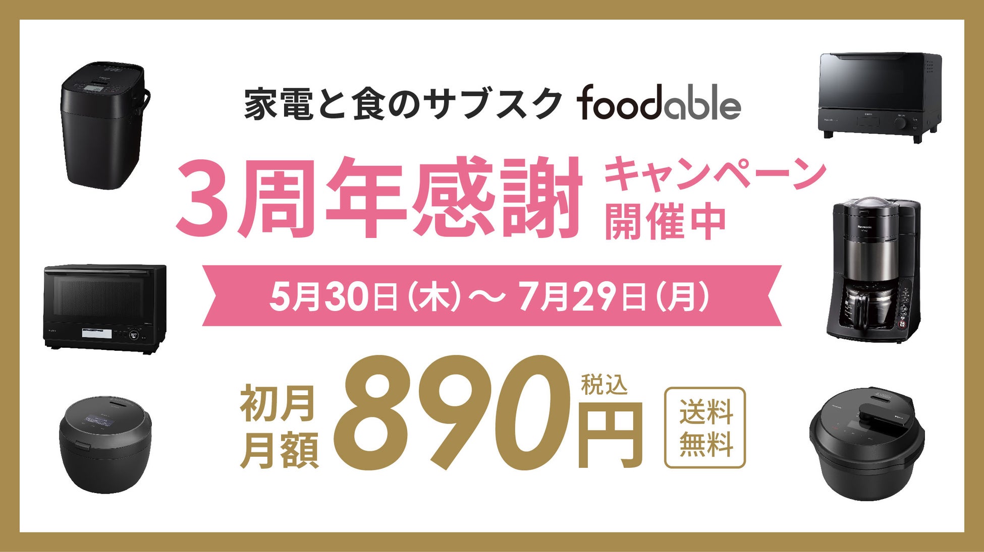 パナソニック株式会社(以下、パナソニック)は、家電と食のサブスクサービス「foodable(フーダブル)」は、3周年を記念して、もれなく特選近江牛がついてくる特別セットを販売いたします。調理家電、厳選食材に加え、特選近江牛がついた特別セットは、初月月額890円(送料込み・税込み)で期間限定販売します。
