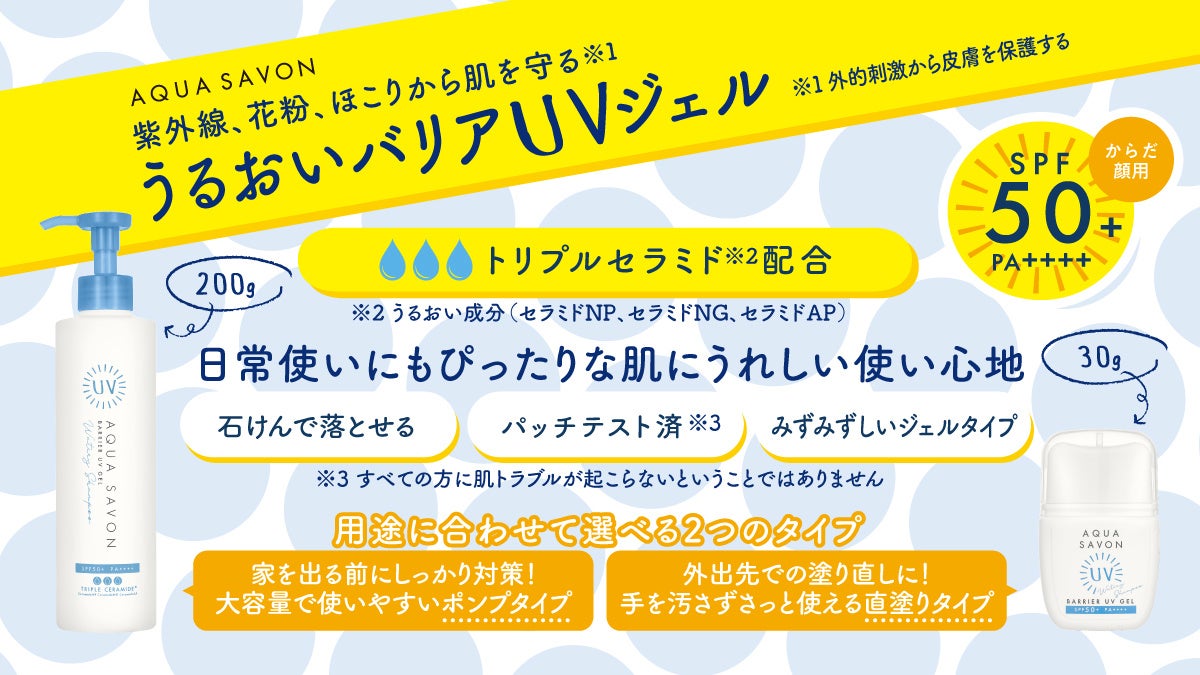 紫外線だけじゃない!花粉やほこりからも肌を守る(※1)、うるおいバリア機能がついたスキンケアUV『アクア シャボン バリアUVジェル』発売