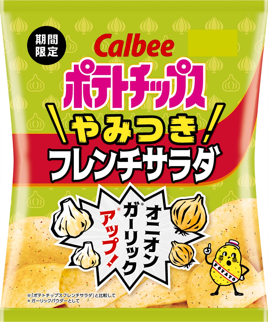 ●「ポテトチップス フレンチサラダ」と比較して、使用するオニオンとガーリックパウダーの量を増やし、よりやみつきになるような味わいに仕上げています。