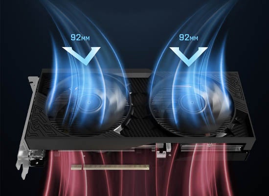 オリジナルファンブレード「WINGS」の2連ファンにより、グラフィックボードの発熱を抑え、パフォーマンスを発揮する際も安定動作