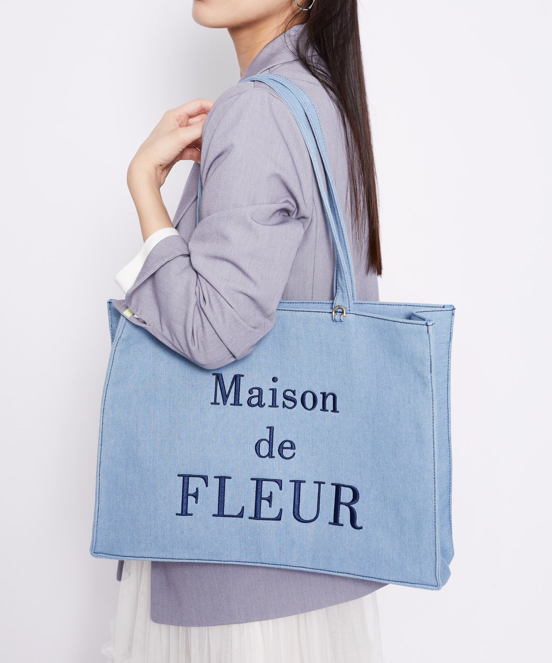 デニムブランドロゴ刺繍トートバッグ