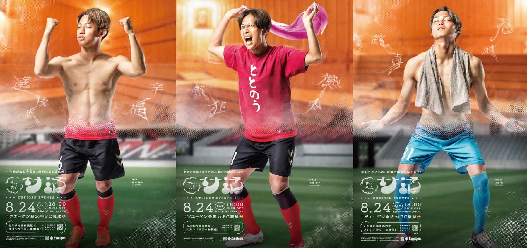 さらに31の温泉施設のうち、30の施設で応援アンバサダーとして、ツエーゲン金沢の選手たちのサウナ姿やととのった姿のポスターが見られる楽しみも!