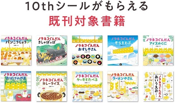 ノラネコぐんだんシリーズ既刊(対象書籍のみ)のいずれかをフェア参加店舗で購入すると、「10thシール」(B6サイズ)がもらえます! ※特典はなくなり次第終了です。