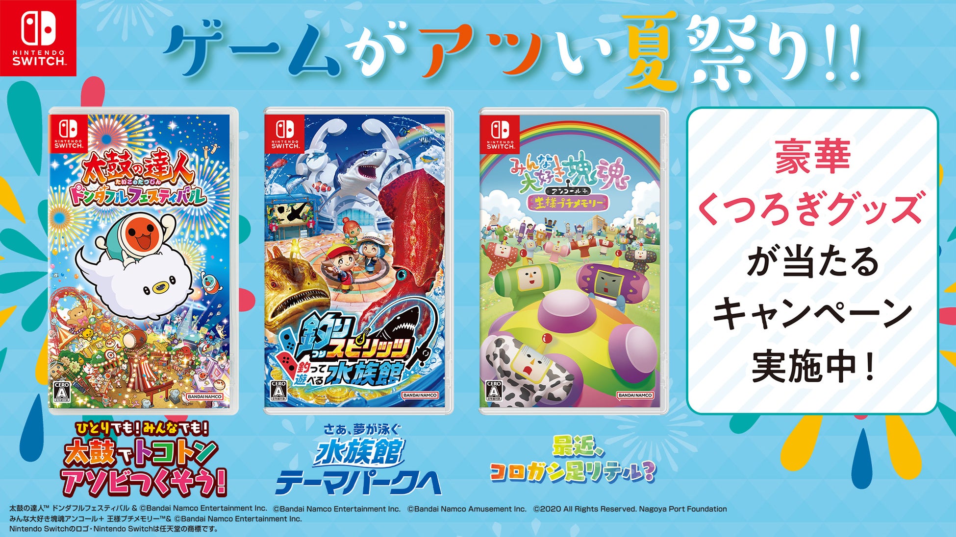 この夏はゲームで盛り上がろう!『#ゲームがアツい夏祭りキャンペーン』 開催中!バンダイナムコの家庭用ゲームをプレイして豪華くつろぎグッズをゲットしよう!Wチャンスキャンペーンも!