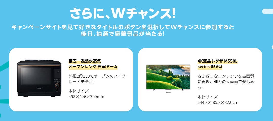 対象タイトルの感想や気になったところをTwitterに投稿することで参加できるWチャンスも見逃せない!