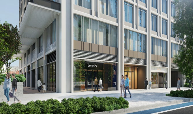 また、多彩な機能を備えたミクストユース型の施設であり、高層階に賃貸住宅を配置、中層階にはロンドン発の会員制クラブ「Soho House」が日本初進出、下層階にオフィス、1階には物販・飲食の4店舗が入居します。足元には広大な緑地広場を整備し、どなたでもご利用いただける憩いの場を創出します。