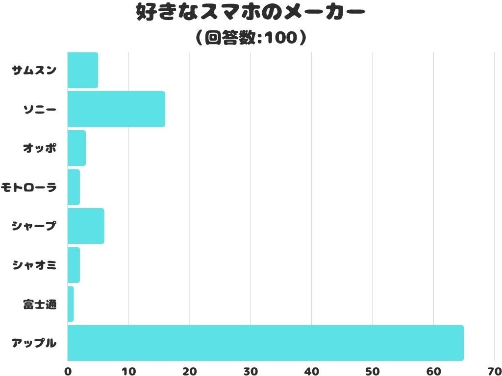 好きなスマホのメーカーをアンケートにて調査したところ、1位は「アップル」でした。