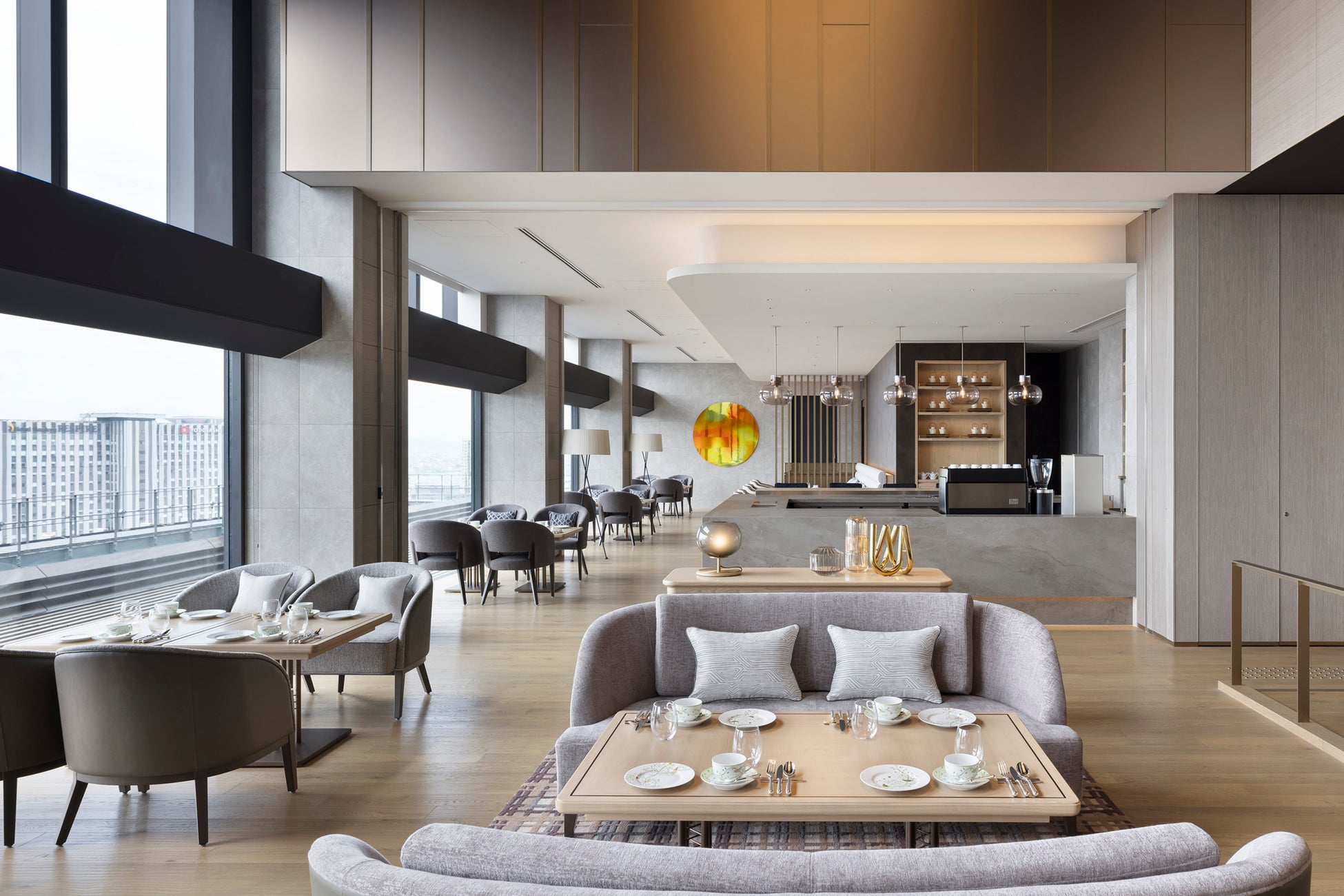 初代大阪駅の切妻屋根をモチーフにした天井高約10メートルの『光の屋根』と線路に見立てた巨大なアートが象徴的なロビーラウンジ。旅人たちの想いや時間に寄り添い、その一服のひとときに、心を込めて、おもてなしいたします。