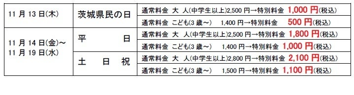 11月13日当日は入場料が1,000円ポッキリで超おトク!2025年11月13日(木)~2025年11月19日(水)