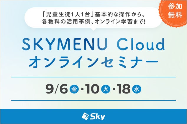 Sky株式会社では、児童生徒1人1台の学習活動端末支援Webシステム「SKYMENU Cloud」の基本的な使い方や教科指導、オンライン学習における活用例のご紹介など、毎月複数のテーマを設けてオンラインセミナーを開催しています。