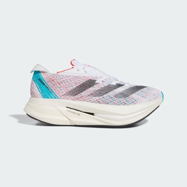 アディダスのランニングシューズでは初となる 3 層構造のLIGHTSTRIKE PROを搭載した、スタックハイト 50mm の厚底仕様。2 層のフルレングスフォームで挟みこんだ、真ん中の新ミッドソールが、軽量化を実現しながらも前足部と中足部にバネのような弾力をもたらす設計に。Continental™ コンパウンド(複合ゴム)を採用したアウトソールが、厳しいコンディションの路面でも優れたグリップ力を発揮。