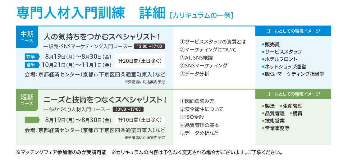 企業と京都ジョブパークが協力して人材を育成するプログラムを実施します。