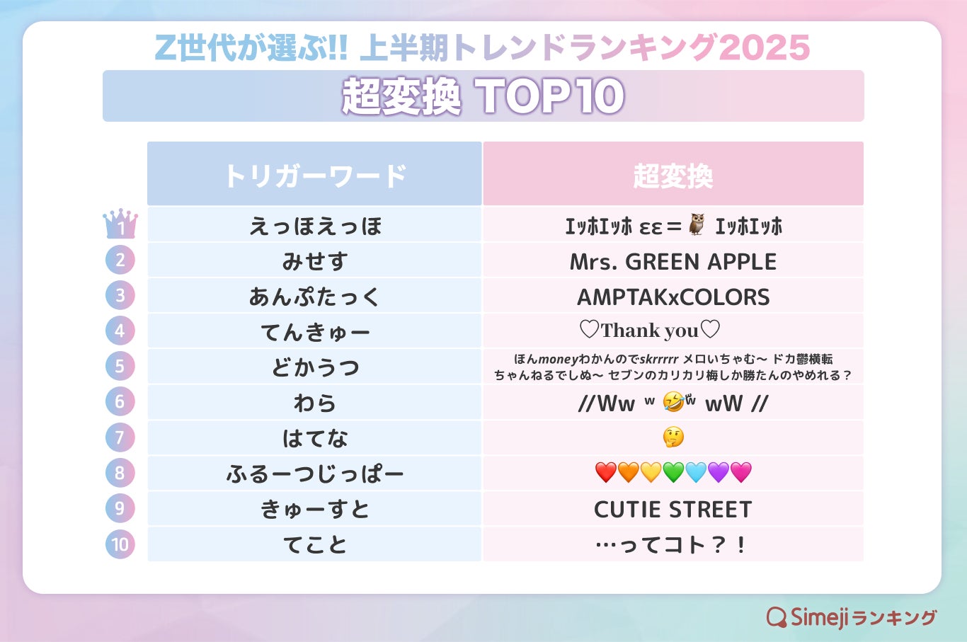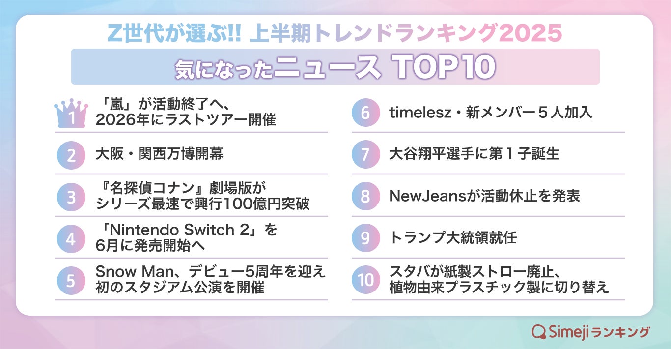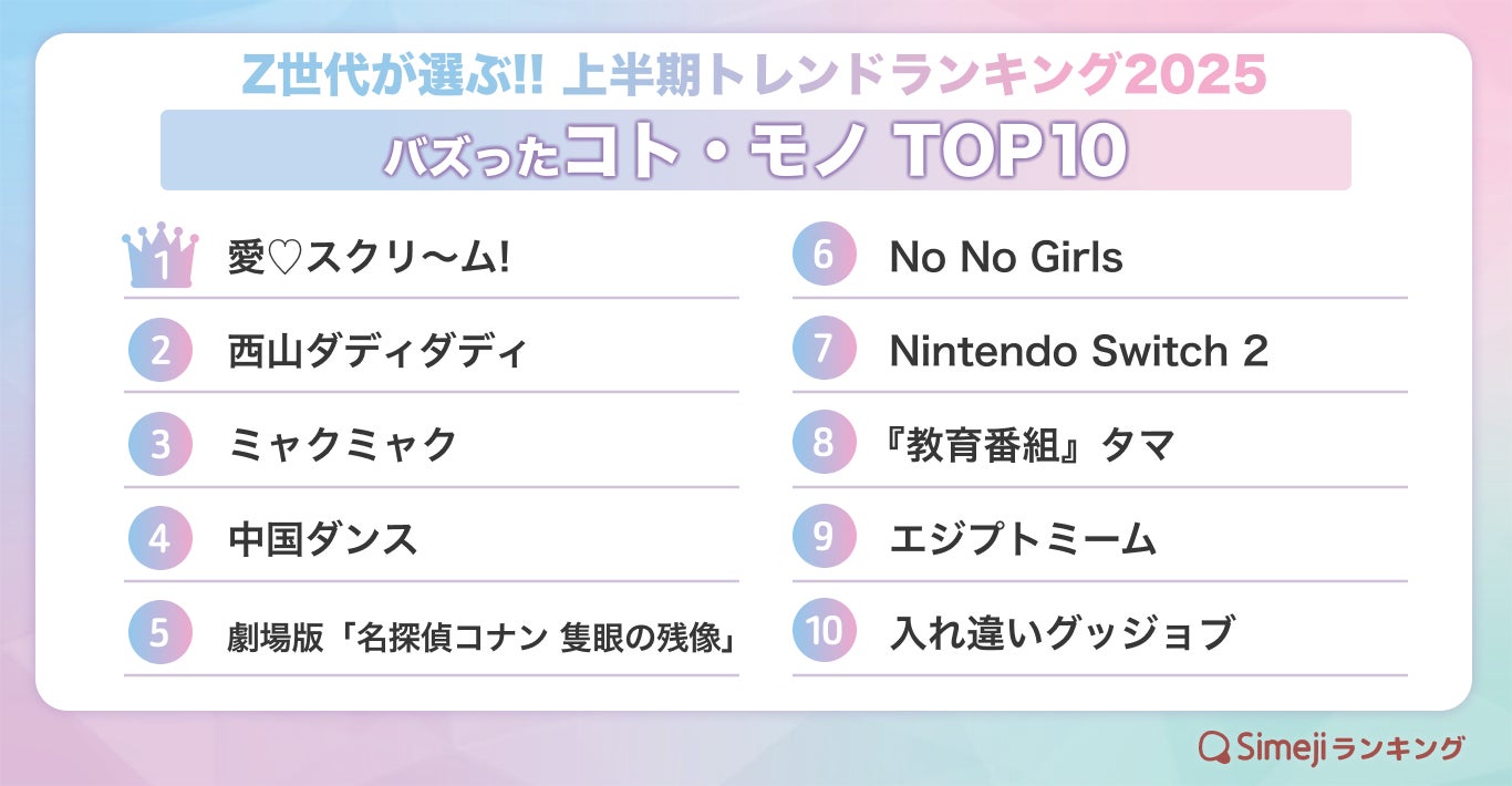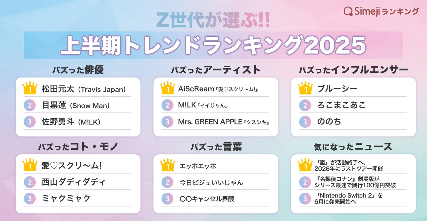 【Simejiランキング】Z世代が選ぶ!!「2025年上半期トレンドランキング」