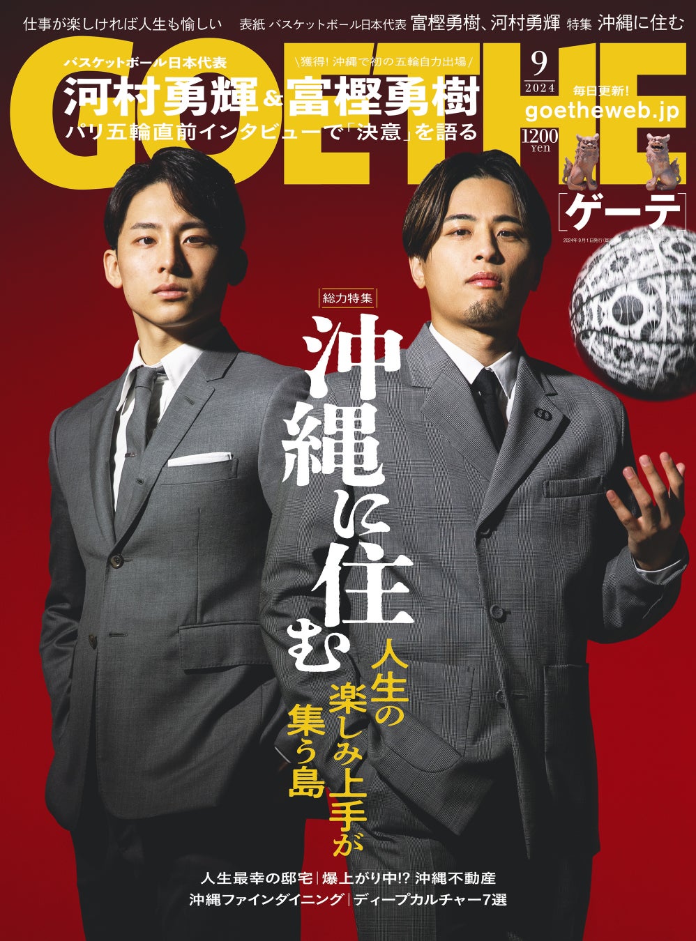 仕事に遊びに一切妥協できない男たちが、人生を謳歌するためのライフスタイル誌『ゲーテ9月号』が7月25日に発売となる。今回の特集は“沖縄”。“住むための沖縄”を堪能している人のライフスタイルに迫る。表紙を飾るのはバスケットボール男子日本代表・AKATSUKI JAPANの富樫勇樹選手と、河村勇輝選手。パリ五輪を直近に控えたふたりが意気込みを語った。