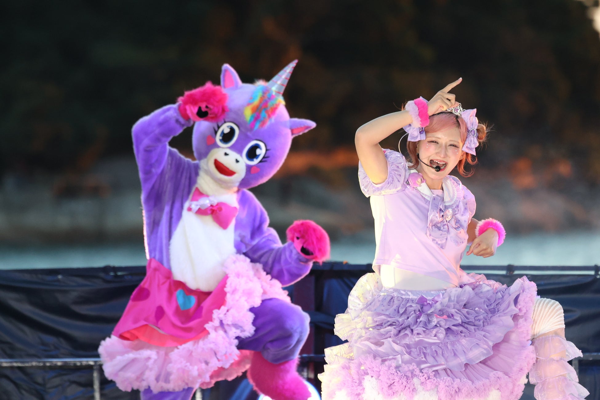 最新曲「ユニコーンパーティー」は、“チャンスを掴み取れ!”というメッセージが込められていると語り、しなこの明るいエネルギーに引き込まれるように、暮れゆく夕日に照らされ、パワフルなしなこに合わせて会場のキッズたちも一緒に踊る一幕も。