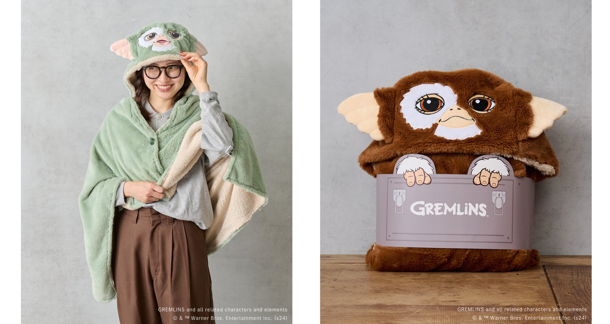 様々な使い方ができる、ボリューム感たっぷりのフード付きブランケット。ふわふわの肌触りでとてもあたたかいです。ひざ掛けにしたり、クッションとして使ったり。フードをかぶれば「ギズモ」になりきることができます!
