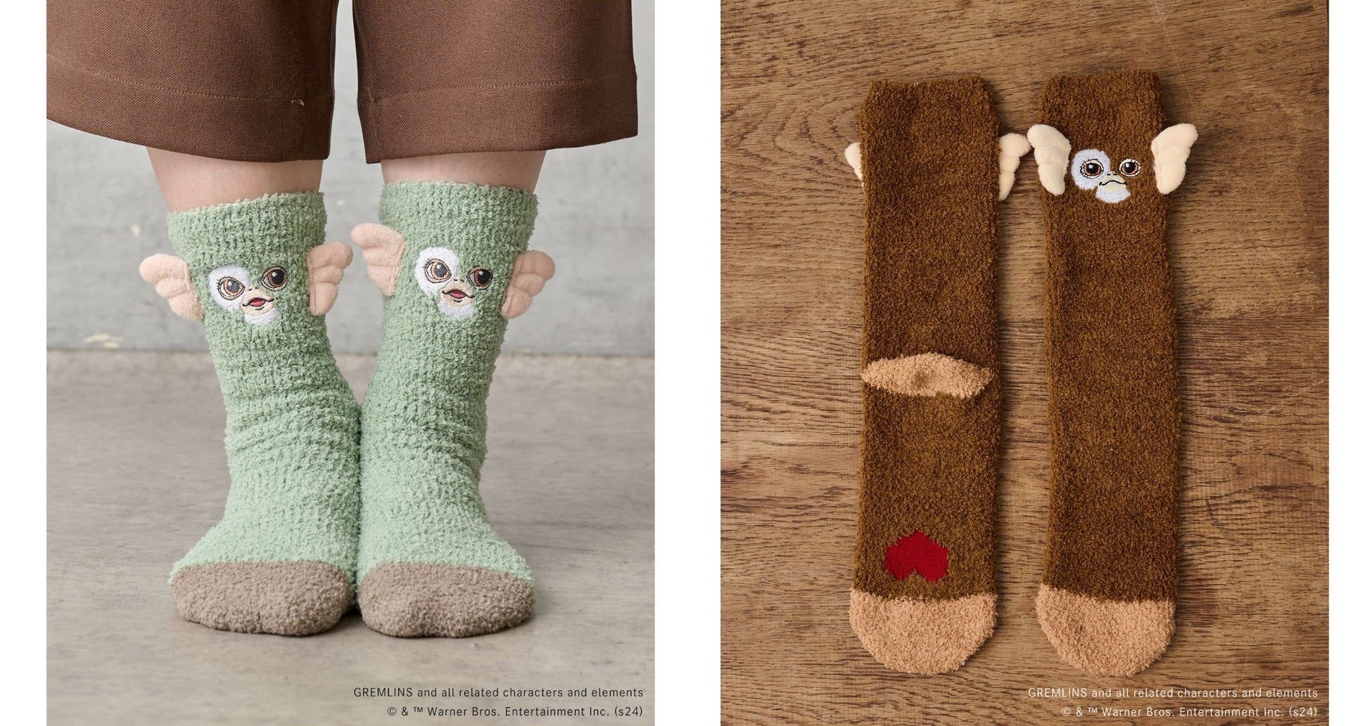 昨年大人気のソックスがリニューアルして再び登場!「ギズモ」の大きな耳を立体的に表現しました。伸縮性があるので、お部屋でもゆったりと履くことができます。足裏にはぬいぐるみとお揃いのハートマーク入り。