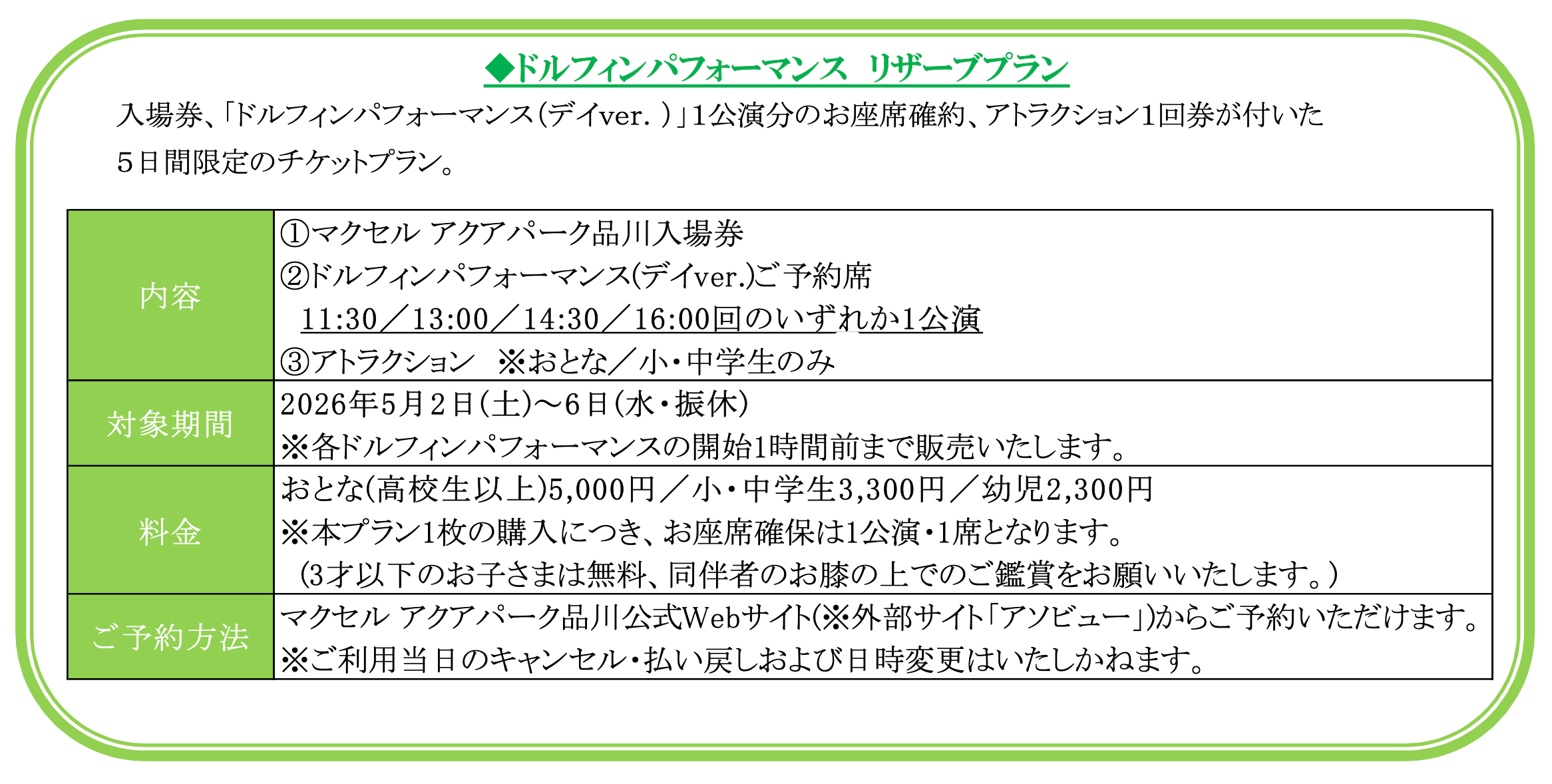 【5月2日(土)~6日(水・振休)】10:00/11:30/13:00/14:30/