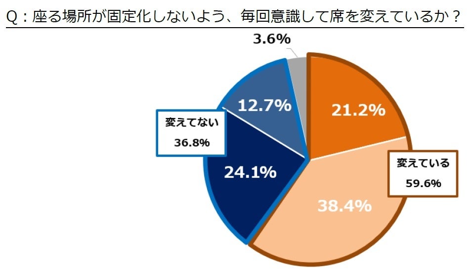 席を意識的に変えている人は約6割、約4割は席が固定化しがち。