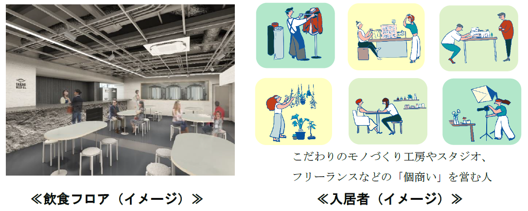 高尾ビールと協業して、入居者同士や入居者と地域にお住まいの方が交流できる場所を設け、入居者のPOP UPショップやギャラリーなどのイベントを企画、実施してまいります。また、高尾ビールがマイクロブリュワリー兼タップルームを出店し、地域で採れる農産物も活かした作り立てのビールを提供します。