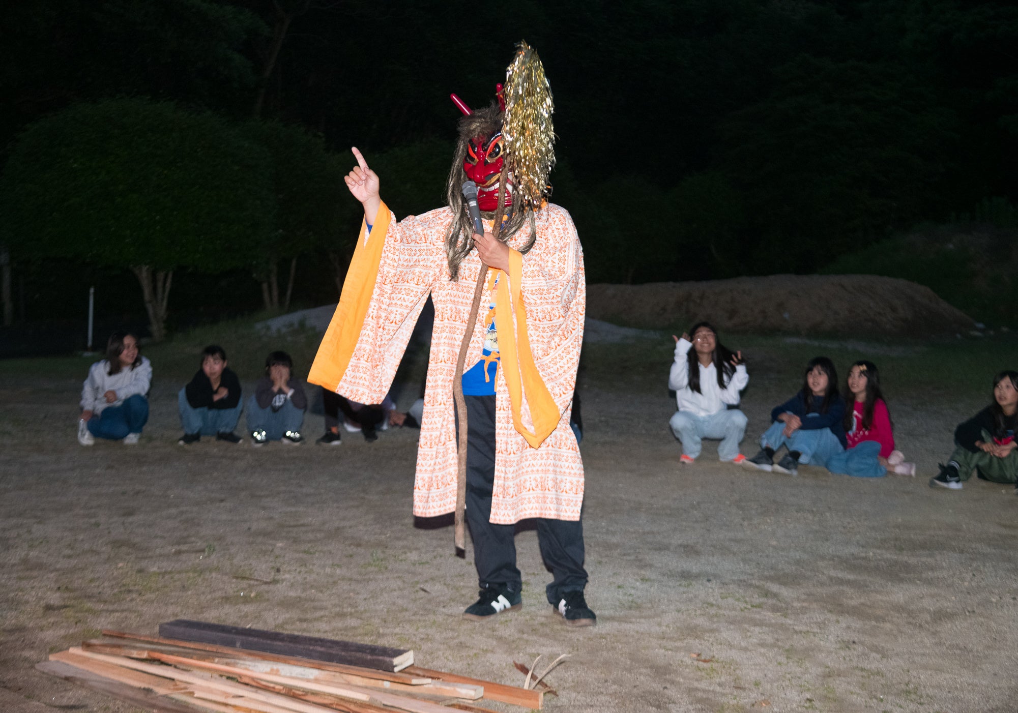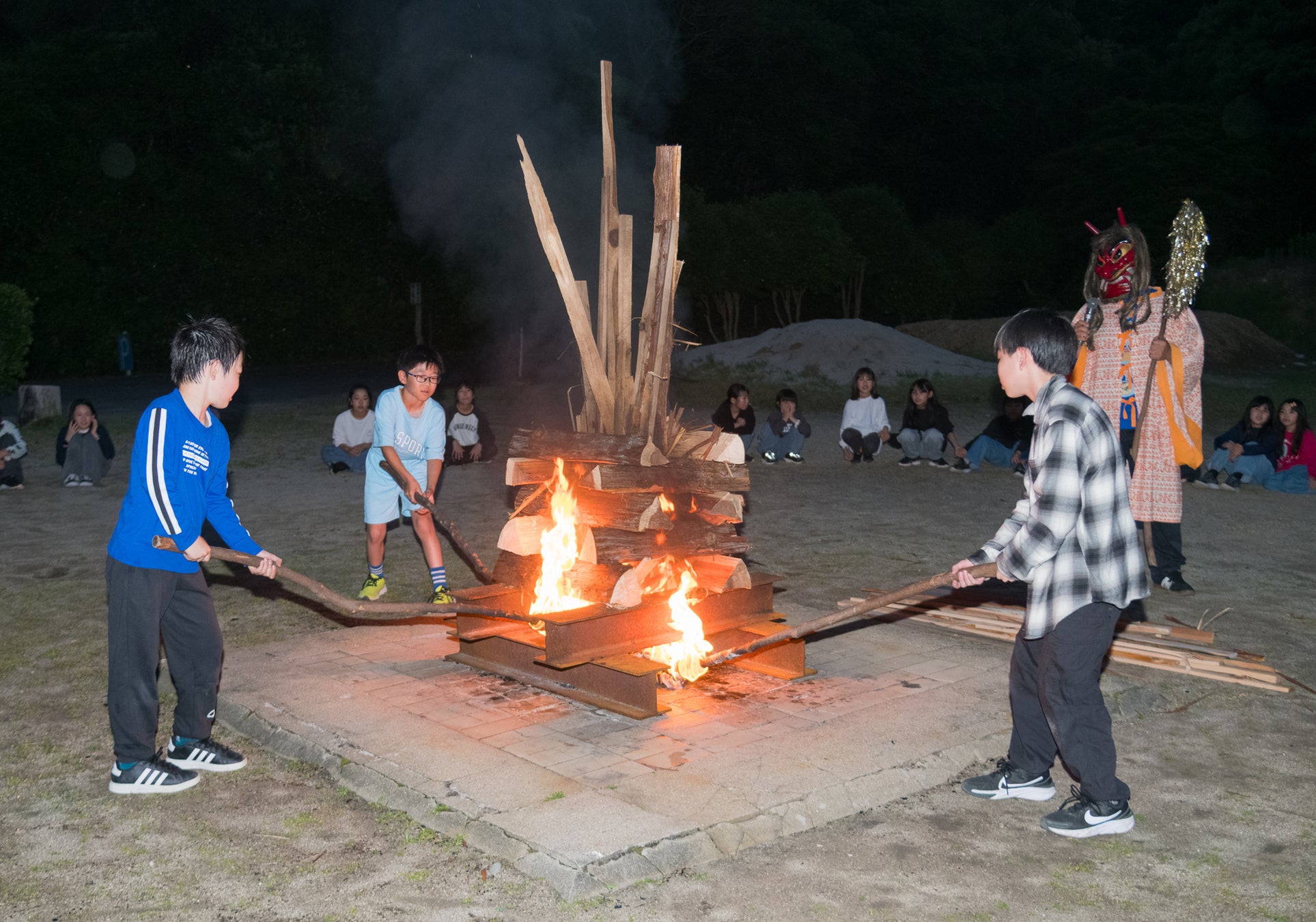 小中学校の行事となっている野外活動。そのキャンプファイヤーで降臨する「火の神」(少年自然の家)の衣装が、高校生のデザインで約35年ぶりにリニューアルしました☆