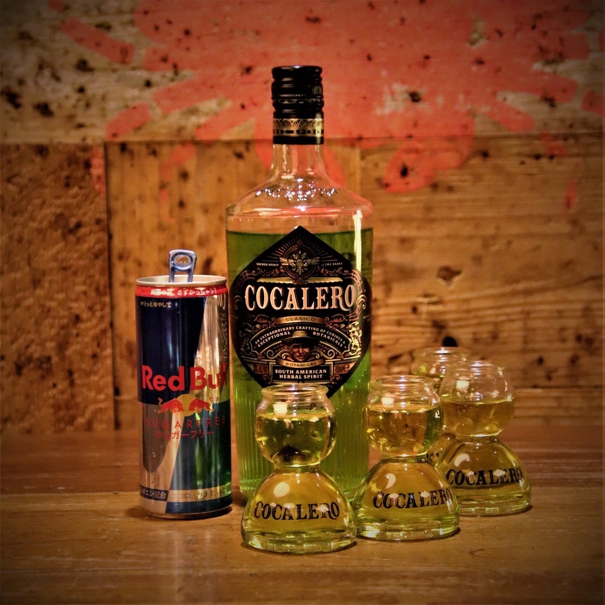 ひょうたん型の特徴的なボムグラスの下の部分にレッドブルを入れ、上の部分に南米で取れるコカの葉と様々なハーブをブレンドしたリキュール「コカレロ」を入れて2層の見た目を楽しむカクテル。2杯目以降はコカレロを追加すると、レッドブル1缶分の「レッドブル ボム」を楽しめる。